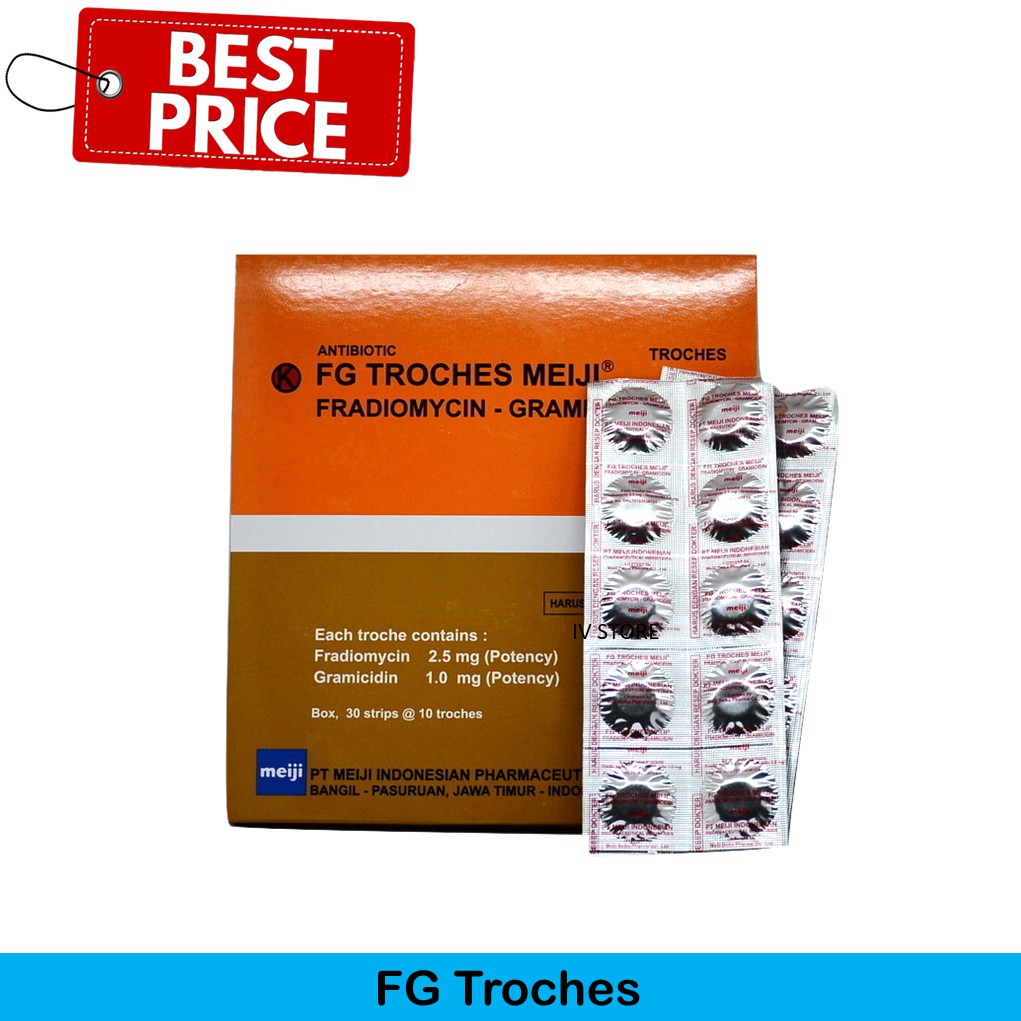 Jual Fg Troches Meiji Strip Kota Jambi Apotek Saroha Tokopedia. Masih banyak yang menggunakan obat ini tanpa masih sering terdengar pertanyaan mengenai fg troches ini bisa digunakan untuk obat apa saja? Fg troches atau fg troches meiji adalah salah satu obat radang tenggorokan paling populer. Fg troches adalah obat yang merupakan kombinasi dari gramicidin dan fradiomycin, di mana keduanya adalah jenis antibiotik. Berapa dosis penggunaannya dan efek samping obat troches itu. Indikasi indikasi fg troches adalah untuk Kedua bahan dalam fg troches ini dapat membunuh beberapa jenis bakteri penyebab peradangan di mulut dan tenggorokan. Fradiomycin 2,5 mg gramicidin 1,0 mg farmakologi / cara kerja obat fradiomycin dan gramicidin adalah antibiotik yang mempunyai efek bakterisidal, dan aktif terhadap bakteri staphylococci dan streptococci dan. Farmakologi / cara kerja obat fradiomycin dan gramicidin adalah antibiotik yang mempunyai efek bakterisidal, dan aktif terhadap bakteri staphylococci dan streptococci dan mempunyai efek aditif. Komposisi setiap 1 tablet hisap fg troches mengandung : Ketahui manfaat, dosis, dan efek sampingnya berikut ini! Fg troches adalah obat antibiotik untuk radang tenggorokan dengan kandungan utama fradiomycin dan gramicidin. Fg troches atau fg troches meiji adalah obat tablet hisap dengan bahan antibiotik fradiomycin dan gramicidin. Fradiomycin sulfate sulfate oral preparations are contraindicated in patients with inflammatory or ulcerative gastrointestinal disease because of the potential for enhanced gastrointestinal absorption of neomycin. Fg troches meiji merupakan jenis obat antibiotik. ➠ fg troches meiji fradiomycin gramicidin adalah obat sakit dan radang tenggorokan.