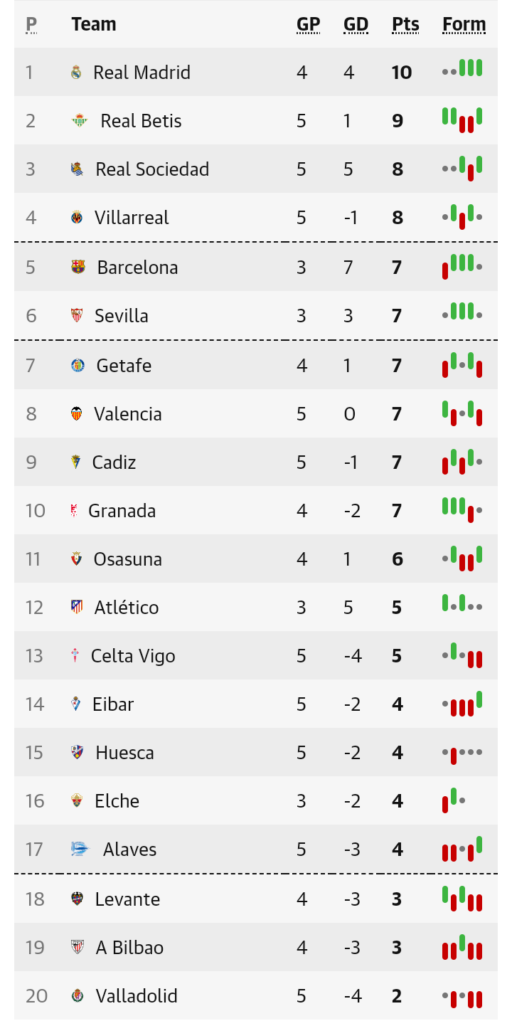 La Liga Table 2020 Fixtures. According to la liga schedule, we have only one top 4 fixture in january in which valencia will face barcelona at mestalla stadium for matchday 21 clash. January february march april may june july august september october november december. Check la liga 2020/2021 page and find many useful statistics with chart. All times shown are your local time. Spanish la liga scores, results and fixtures on bbc sport, including live football scores, goals and goal scorers. 5 тур таблица календарь статистика. Spain (20) la liga segunda división segunda b tercera division autonómicas copa del rey super cup copa federacion copa catalunya supercopa de catalunya división de honor juvenil liga nacional juvenil copa del rey tables. Complete table of la liga standings for the 2020/2021 season, plus access to tables from past seasons and other football leagues. Summary results fixtures standings archive. Click on team's names to highlight the. We are not limited only to the above data. Follow laliga 2020/2021 and more than 5000 competitions on flashscore.co.uk! Find laliga 2020/2021 table, home/away standings and laliga 2020/2021 last five matches (form) table. Fixture changes explained add fixtures to calendar. View the 380 premier league fixtures for the 2020/21 season, visit the official website of the premier league.