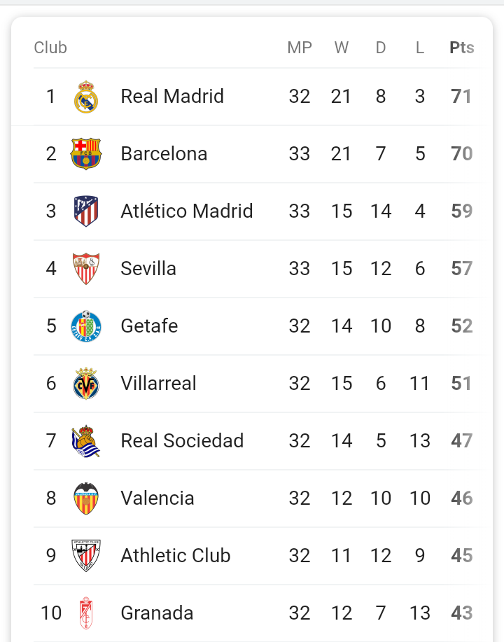 Spain La Liga La Liga Teams La Liga History - Summary Results Fixtures Standings Archive.