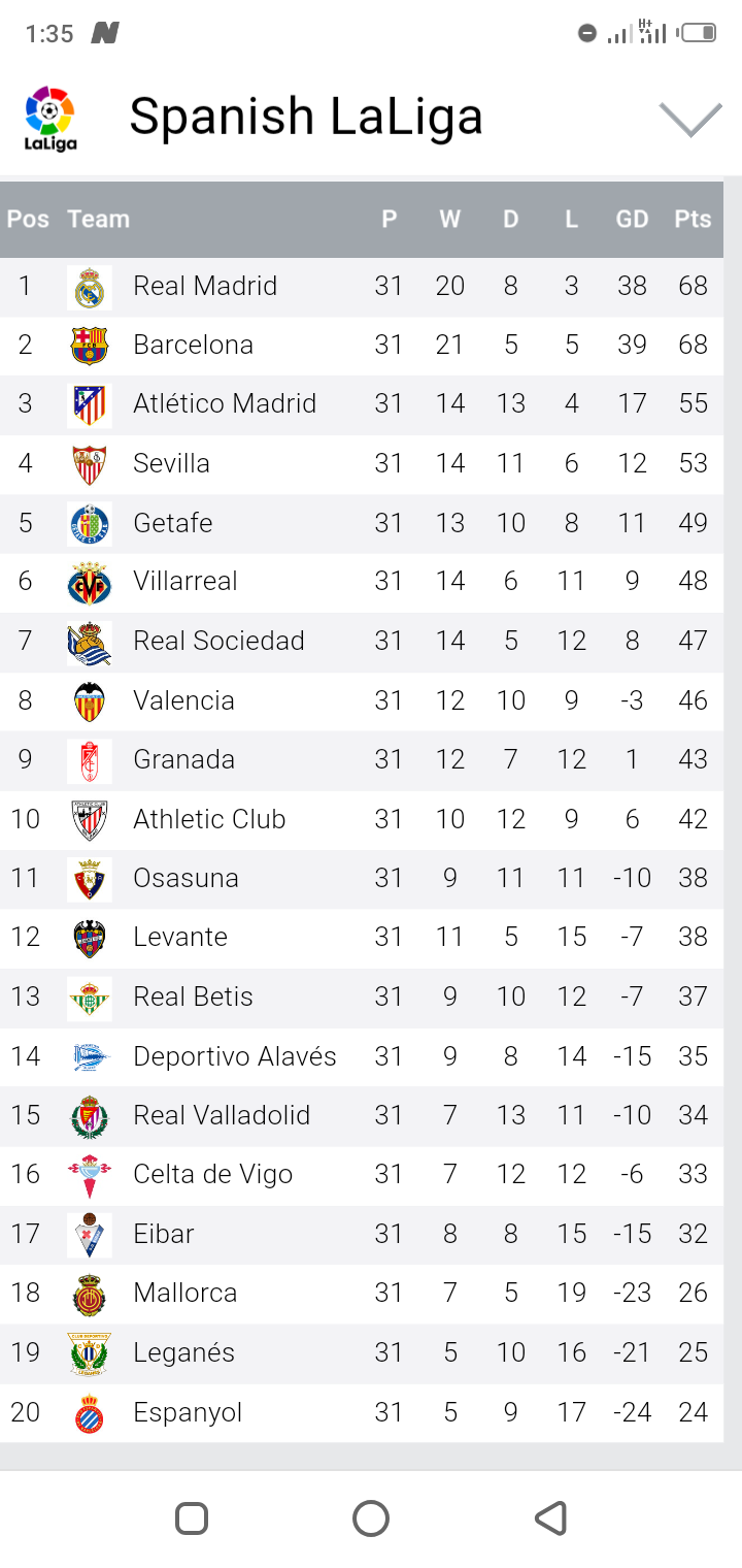 Strive Sport On Twitter How The Laliga Table Looks Like Real Madrid Stay Atop Of The Table With Just One Point Lead Over Barcelona Atleti And Sevilla Are Level On . Complete Table Of La Liga Standings For The 2020/2021 Season, Plus Access To Tables From Past Seasons And Other Football Leagues.